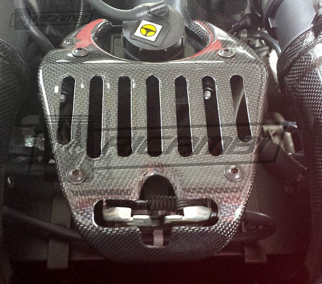 Easy to install, those carbon fiber engine bay panels can be exchanged and installed in about 15 to 20 min.