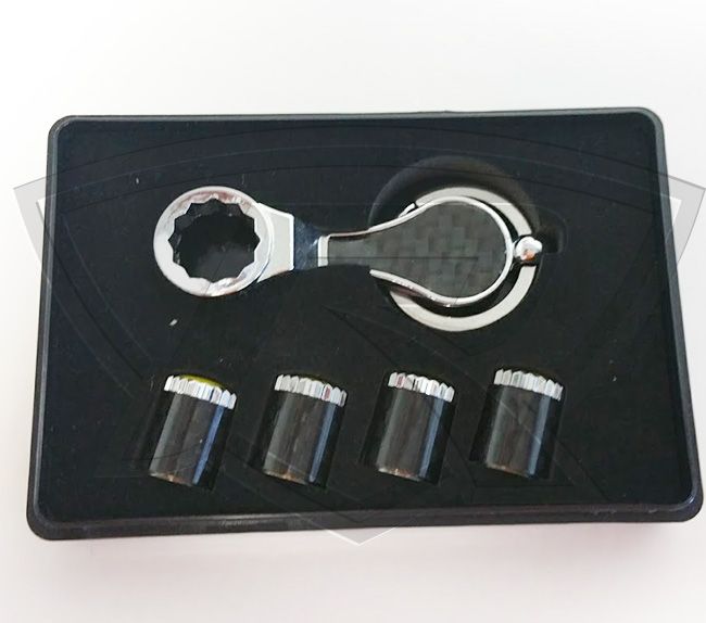 Set of Four (4) Carbon Fiber Tire Valve Stem Caps in Gloss Finish with Anti-Theft Lock.