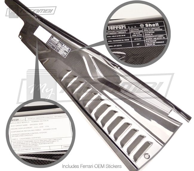 THIS IS AN AFTERMARKET REPLACEMENT PART SOLD WITH THE FERRARI OEM STICKER PART NUMBER 258125 & 258127. We are no longer providing the "emission" sticker. This will be sold separately. Contact us if you needit