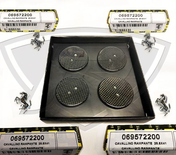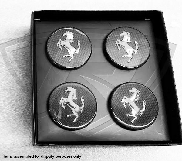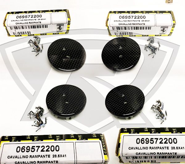 These wheel caps are sold as a kit which includes four (4) Ferrari OEM Emblems (Cavallino) p/n 6957200.