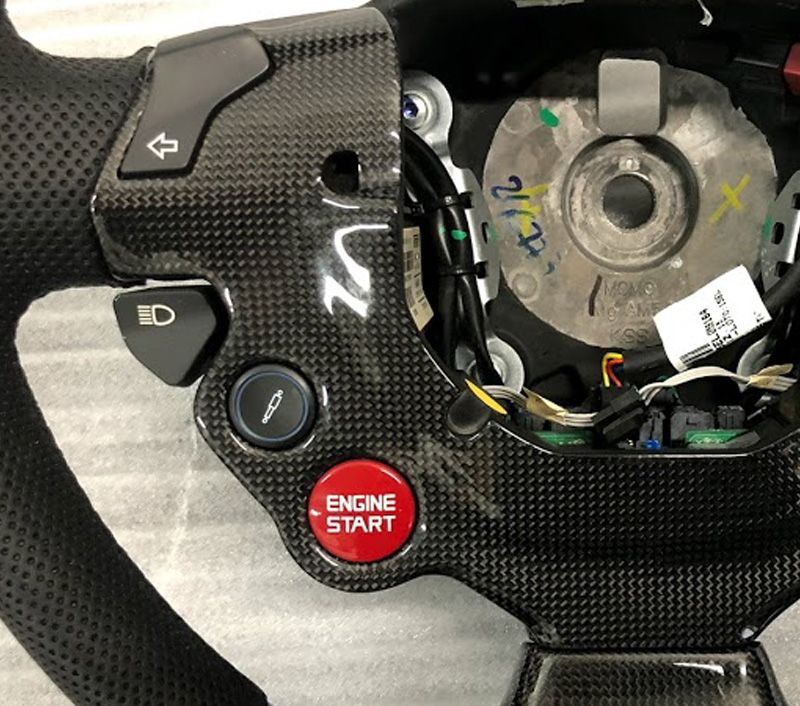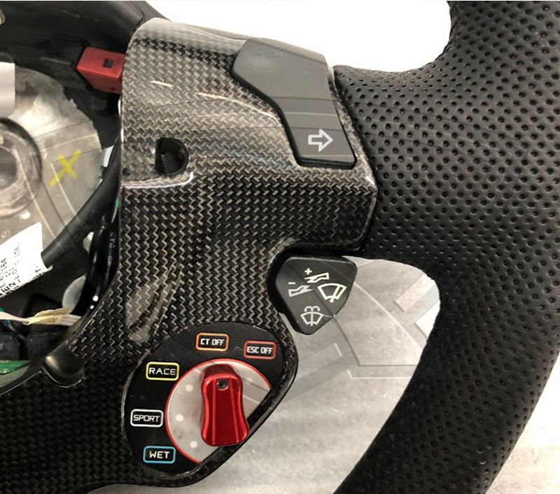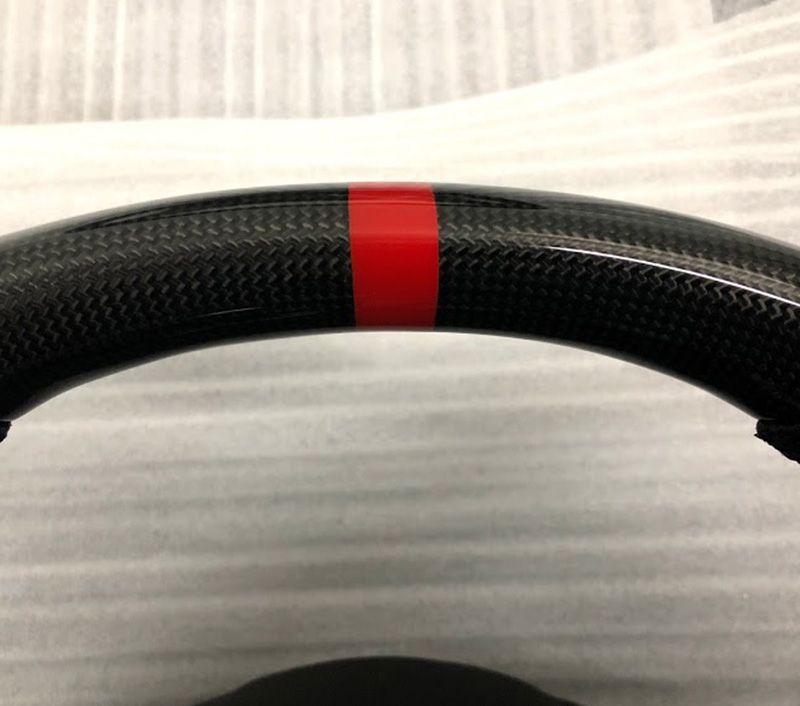 This part has been customized  by adding a red 12 o'clock stripe, includes black stitching (to fit most vehicle), we included a new manettino sticker and it will complement the exisiting carbon fiber interior of your vehicle.  .