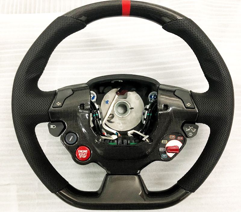 We are offering this 488 GTB and Spider Carbon Fiber Steering Wheel, which was made out of a "regular: non CF OEM steering wheel. The steering wheel is "remanufactured, but BRAND NEW