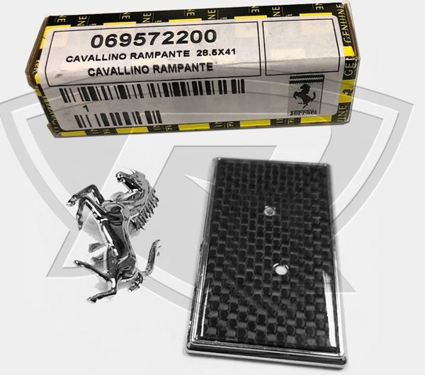 This Carbon Fiber Hood Badge is sold with Ferrari OEM Cavallino PN 69572200 and will fit all different Ferrari models