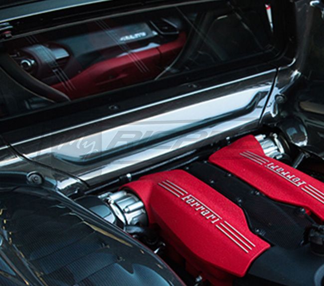 The UnderScreen Panel (also called the Rear Underscreen Shield) is the panel going right below the cockpit glass in the engine compartment, and this part is are made using the exact same quality carbon fiber and weave as used by Ferrari, which will allow you to keep the OEM look on your Ferrari 458 at a fraction of the cost of the Ferrari OEM part.