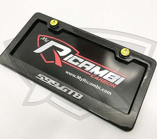 This Carbon Fiber License Plate Frame is made to fit Ferrari F1 (US Models only) and it includes the OEM "599 GTB" emblem p/n 84558800.