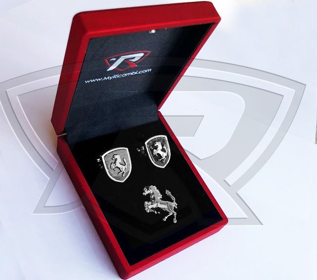 Carbon Fiber Cufflinks with Cavallino and Cavallino Lapel Pin