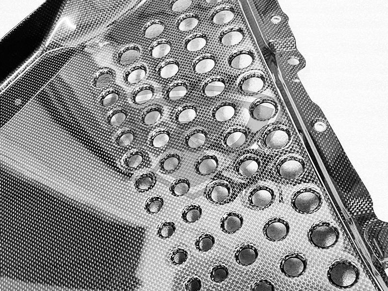 Using DuPont's SupraShield™, the clear Coat on our carbon fiber parts are all binary clear coat compositions using ceramic particles designed to offer long-term scratch resistance, gloss and durability and is applied as a final coating over a traditional clear coat, CeramiClear™ has an approximate thickness of 7.5 µ (0.5 Mil) this top layer also contains the paint systems UV protection.